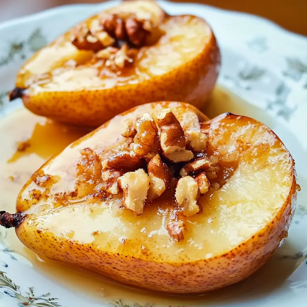 - Serve: Serve the baked pears warm, spooning some of the delicious honey-walnut sauce from the bottom of the dish over each half.